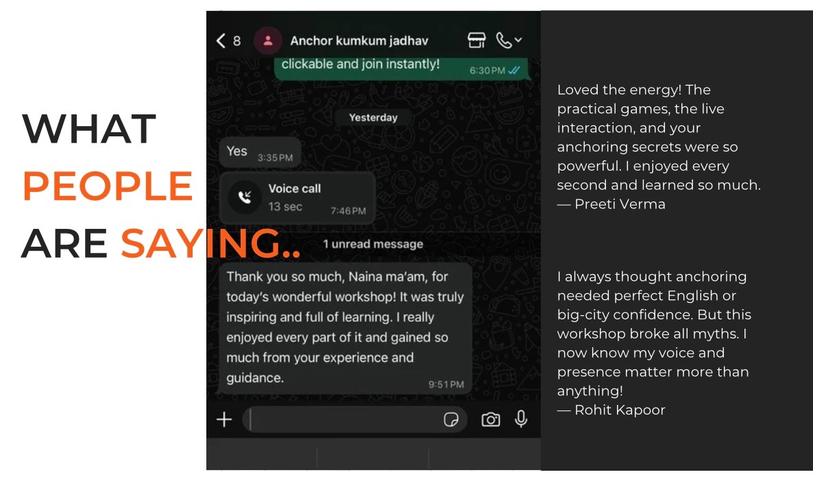 Helping you turn stage fear into show-stopping confidence and get paid for it. Learn how to become a highly paid anchor with Naina Arora.